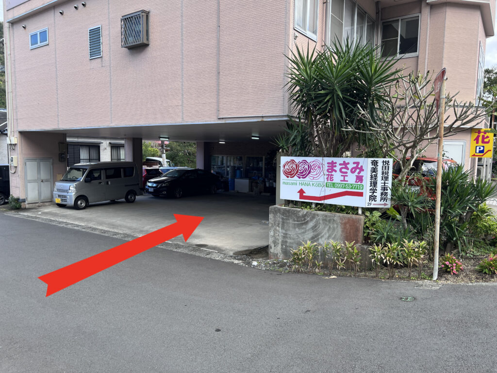 駐車場は店舗前にございます。空いてるスペースに駐車してください。